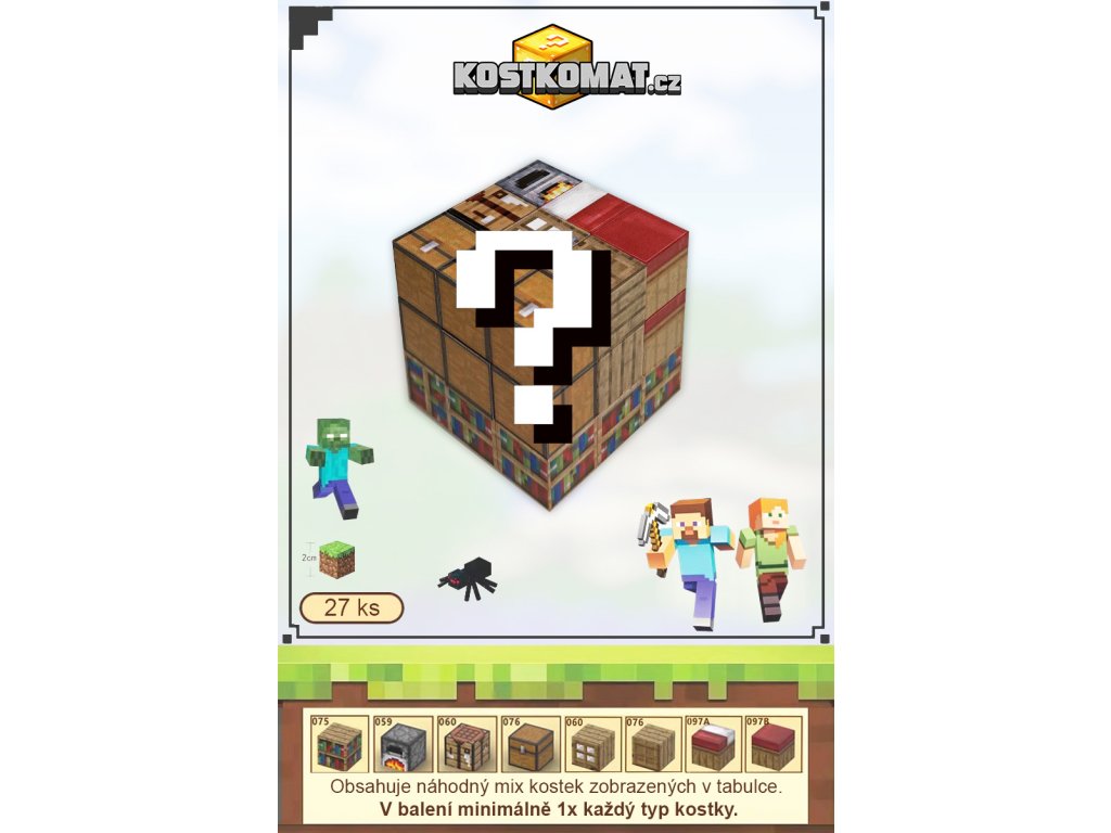 Obsahuje 27 náhodných kostek zobrazených v tabulce. V balení minimálně 1x každý typ kostky.